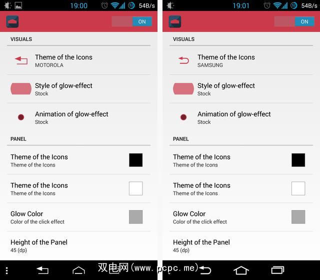 UDN附带了很多按钮主题,包括现货的主题(您可以将按钮的外观与您随附的ROM上的外观相同)手机,或使用您朋友的手机),以提供一些野性(更不用说丑陋的)变体了。在上方可以看到股票摩托罗拉和三星的主题。您还可以更改颜色和发光效果。