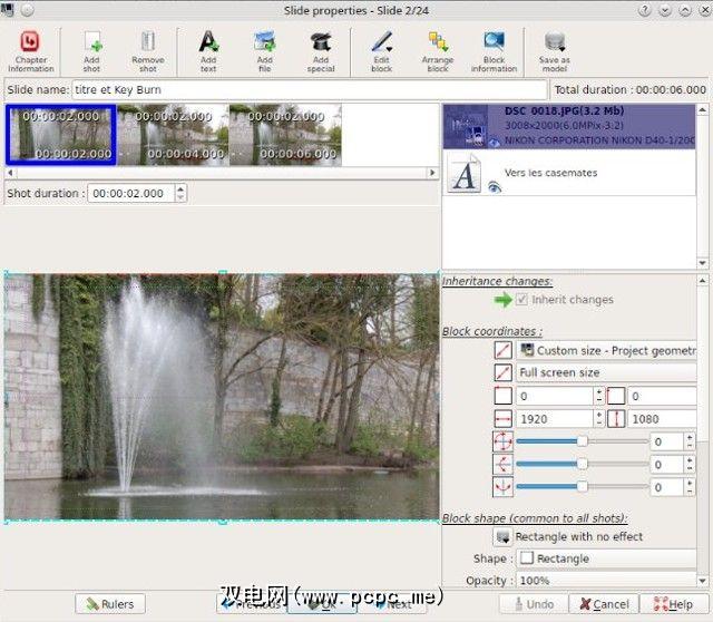 如果尝试使用ffDiaporama,您将意识到没有什么可以阻止您使用它来创建演示文稿。除了导入视频,您还可以将文本添加为“标题",并且借助诸如Texturemate和OpenClipart之类的扩展程序,您可以在幻灯片中插入不同的形状和背景。
