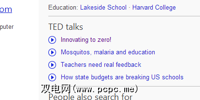 例如,让我们以比尔·盖茨为例。如果您在Bing上搜索他,则会在右侧找到他已完成的TED演讲的列表。