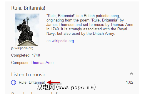 您现在还可以从搜索结果页面播放音频。例如,如果您感觉特别是英国人,则可以搜索“ Rule Britannia"并从页面中摘录。