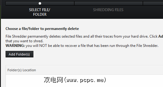 “隐私"部分用于访问文件粉碎机。使用此功能,您可以从计算机中快速永久删除不想恢复的文件。由于多种原因,这可以派上用场,其中之一可能是摆脱不再需要的包含个人信息的文件。