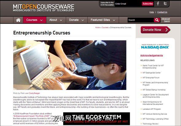 通常在任何其他名称的顶部都可以找到该名称。在线学习课程清单。麻省理工学院开放式课件(MIT OCW)是麻省理工学院(MIT)的一项举措,旨在将其本科和研究生课程的所有教育资料免费在线免费提供给世界各地的任何人。 MIT OCW是MOOC(大规模开放在线课程)运动的先驱之一。在线提供的2000多种课程中,创业课程可能最接近MIT的精神。为什么?援引2009年的一份报告–“ ...当时由MIT毕业生创立的活跃公司雇用了约330万人,全球每年创造2万亿美元的收入。"