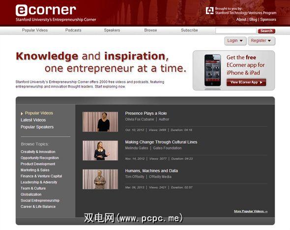 创业Corner收集了2000个免费视频和播客,其中包含思想领袖的创业思想和创新策略。这不是一门正规的结构化课程,而是该领域中一些最聪明的人给出的真实世界智慧的演练。尽管没有教学大纲,但视频却被巧妙地整合到了诸如营销与销售,产品开发和社会企业家精神等主题中。马克·扎克伯格,梅琳达·盖茨,蒂姆·奥赖利和玛丽莎·梅耶等演讲者通过一系列视频发表了自己的见解。然后是托管视频的YouTube频道本身。必须注意。您还可以下载音频并将其随身携带到媒体播放器中。