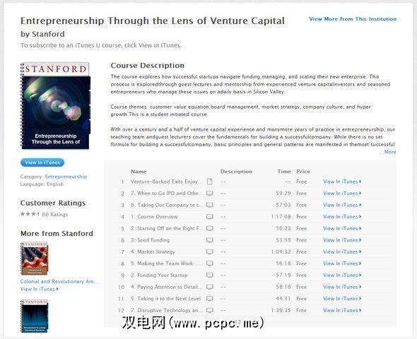 最终,任何成功的商业冒险都可以归结为一个简单的基础-金钱。那就是通过风险资本家提高人均收入的艺术(或技巧)。 iTunes U上的这12部分课程概括了您获得成功资金所需要的全部内容。来自硅谷经验的客座演讲为如何筹集和管理资本提供了宝贵的建议。特定课程由斯坦福大学工程学院(Stanford's School of Engineering)举办,为了您的利益,该课程已在iTunes U和YouTube上免费捕获。