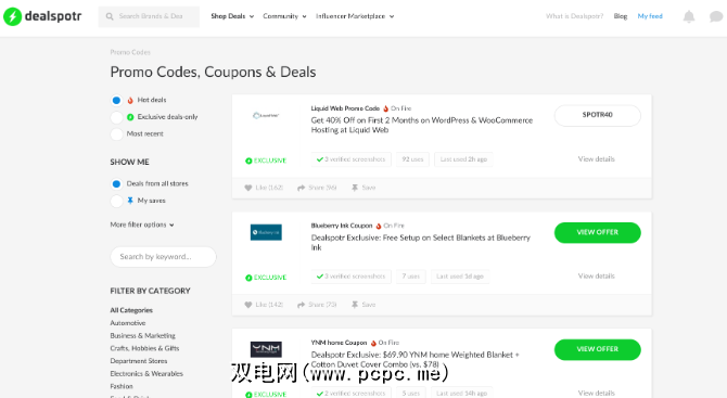 Dealspotr可以轻松地找到您喜欢的品牌的交易。它要求您选择三个或更多品牌进行注册,并会大力跟踪有关它们的所有交易。 Dealspotr是基于社区的,因此普通人都在提交他们发现的便宜货。