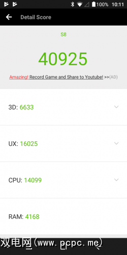 首先,AnTuTu给Blackview S8一个40925。这是各个类别的细分: