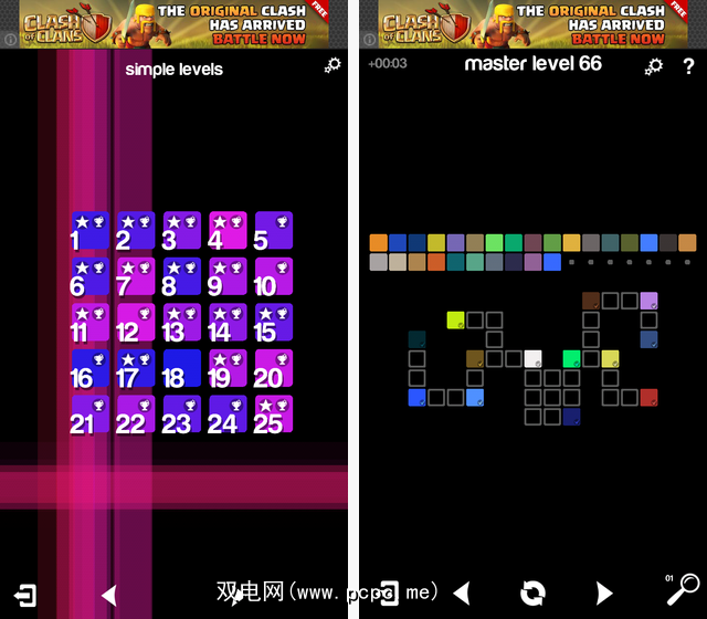 由于颜色和网格形状的差异很大,您再也不会玩同一关卡了,而当您认为自己只会再完成一个关卡时,您的脑子就会开始拼凑下一个难题。