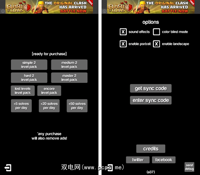 该游戏可以横向和纵向运行,但沿着屏幕顶部播放的广告使其在纵向时显得局促。在右下角,您会得到一个求解。使用解决方案可以为您提供其中一个正方形的正确位置,但每天只能得到一个。当然,您可以通过应用内购买来购买更多商品。