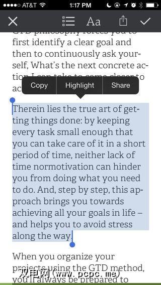 可以调整书籍的字体大小在网络和移动平台上。用户可以在iPhone应用程序上突出显示书籍的段落,类似于在Amazon和iBooks应用程序中突出显示内容的方式。