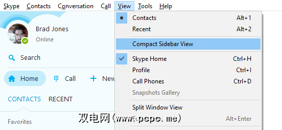 如果这还不足以使Skype降低到足以满足您的需求,值得尝试拆分窗口视图。这会将标准的Skype主屏幕与您的联系人列表分开,将这对视作两个不同的窗口。因此,您可以关闭主屏幕,而只需激活一个联系人列表窗口。您可以在查看菜单中启用此选项。