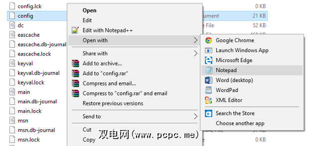 要访问配置文件,请在资源管理器窗口中导航到计算机上的主硬盘驱动器,然后转到用户>您的用户名> AppData >漫游> Skype 。然后,您需要打开以Skype ID命名的文件夹,并找到一个名为 config 的XML文件。右键单击该文件,然后选择使用记事本打开它。