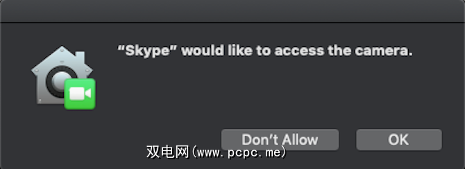 如果某个应用尝试访问您的摄像头或麦克风,您应该会看到一个提示,您可以用于确认或拒绝访问。