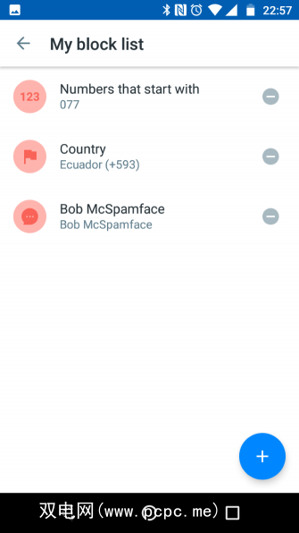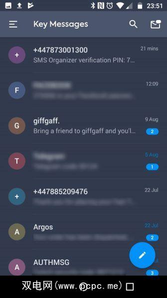如果您想知道如何阻止来自公司的消息,请尝试“关键消息"。通过其阻止列表,您可以阻止发件人发送的文本,一系列(例如,任何以 +1800 开头的数字),甚至是包含单词的数字(例如“要约",“保存"或“优惠券")。此功能使阻止特定公司的SMS垃圾邮件变得容易。