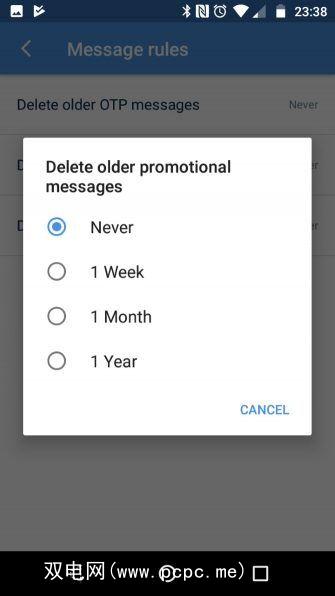 最后,SMS Organizer还可以在预定义的时间(一周,一个月或一年)后自动删除促销密码,阻止密码和一次性密码消息。 )。