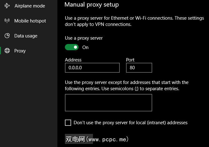 保存后,这些更改应立即生效。要撤消它们,以便您可以重新上网,只需禁用使用代理服务器滑块。