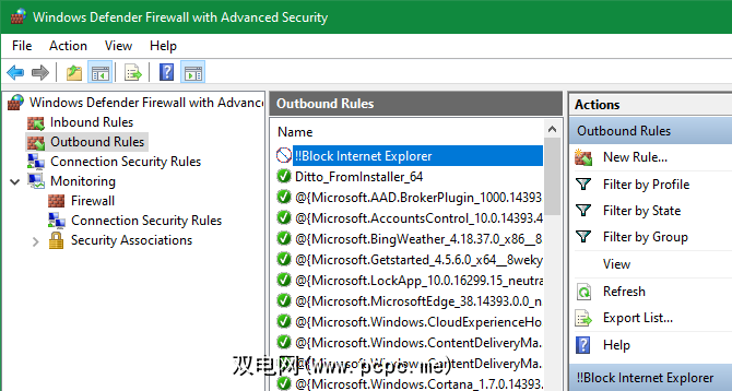 Windows包含一个内置防火墙,可让您控制程序与Internet进行通信的方式。您可以在此处设置新规则,以阻止通过Internet Explorer进行的所有连接。