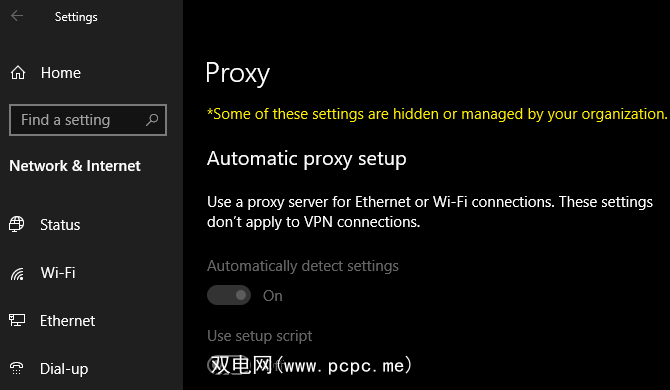 要在Windows 10中更改代理设置,请转到设置>网络和Internet>代理。在此处,禁用页面顶部的自动检测设置滑块。