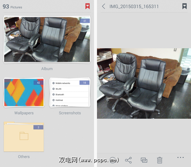 Gallery应用程序也进行了一些修改,为您提供上面显示的这个灰色应用程序,其中带有单独的文件夹,该文件夹的内部会自动按日期排序。此处的更改主要是外观变化,因为该应用程序仍与普通的Android Gallery应用程序一样功能。