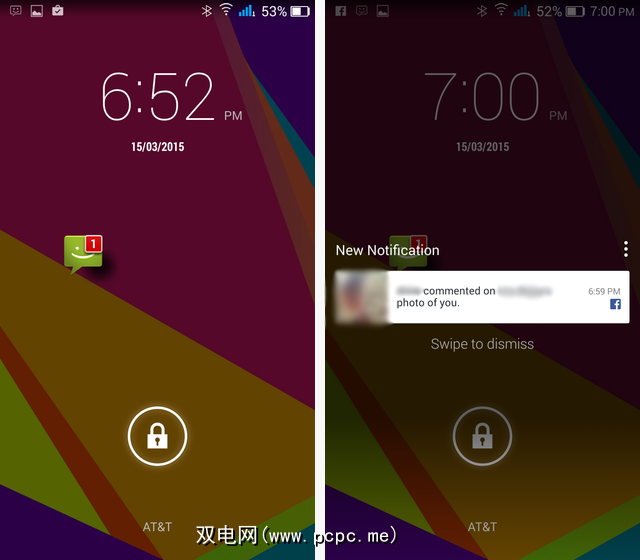 通知的处理方式很奇怪。有些仅显示在通知栏中(如Facebook Messenger),有些则覆盖锁屏(如Facebook),而另一些(如Messaging)则具有独特的拖到解锁圈功能。相当混乱。此外,您无法从锁定屏幕上拉下通知栏,因此对于隐藏在屏幕上的任何通知,您都必须先滑动以解锁,然后再从通知栏向下滑动。