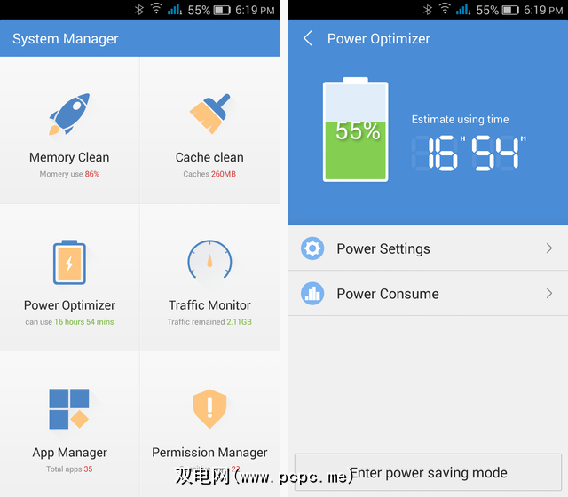 除了 Memory Clean >函数,我已经提到它有害无益,实际上是一个方便的应用程序。考虑到这里只有8GB的内置存储空间,清理缓存非常有用,而且很高兴有一种方法可以在一个地方管理权限以及所有这些权限。您甚至可以访问省电模式,该模式可以关闭数据连接,并帮助您延长电池寿命。