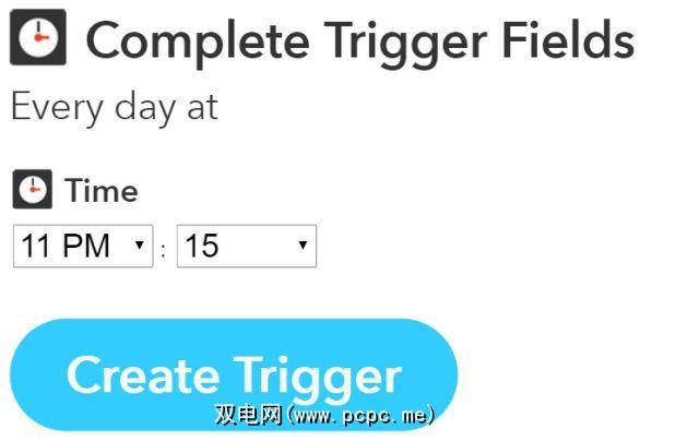 一旦您拥有一个帐户,创建一个新配方,然后选择“日期和时间"触发器,并将其设置为在每天的以下时间触发