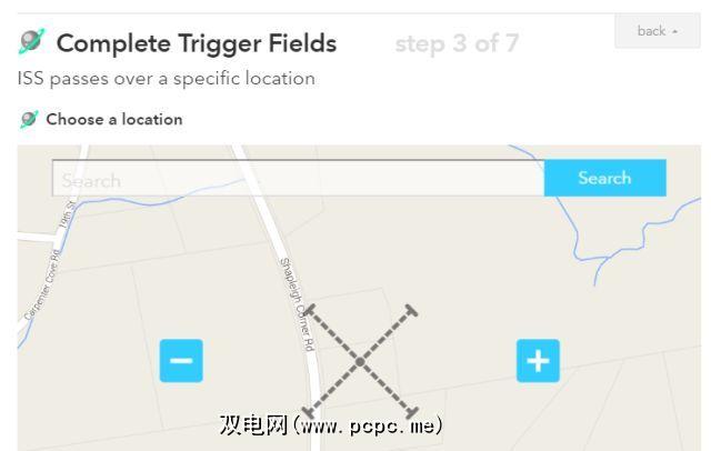 是的,IFTTT内部有一个触发器。它在太空频道中,被称为“国际空间站经过特定位置"。只需在地图的搜索字段中查找您的地址即可。