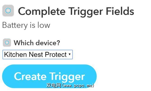 设置起来非常简单。首先,您将从IFTTT的Nest Protect通道中选择“电池电量低"触发器。