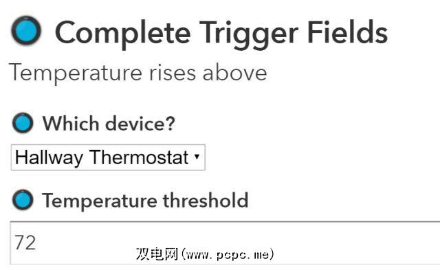在IFTTT的Nest通道中很容易找到此触发器。这就是所谓的“温度升高",您要做的就是输入要通知的温度限制。