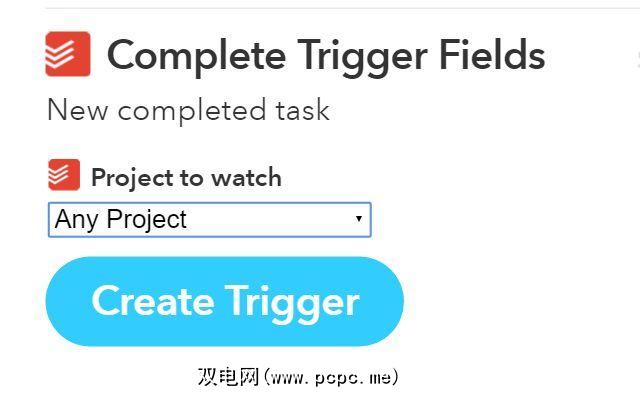 在我的情况下是ToDoist。在ToDoist频道中,有一个“新完成的任务"触发器,每次您将任务标记为已完成时都会触发。