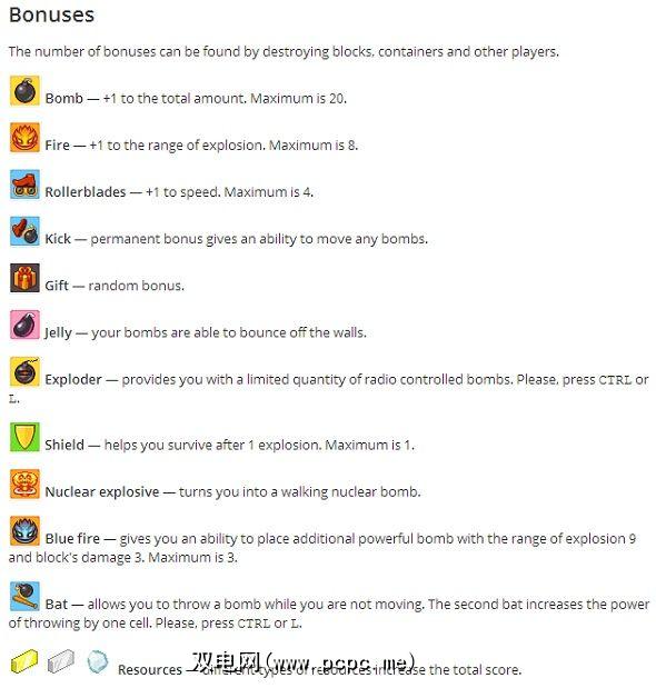 所有其他功能都列在“如何玩"中'页面。简而言之,奖金是旨在提高角色属性或增强其能力的拾音器,同时还有各种不同的炸弹,这意味着您能够以越来越富创造性的方式消灭死亡和破坏。