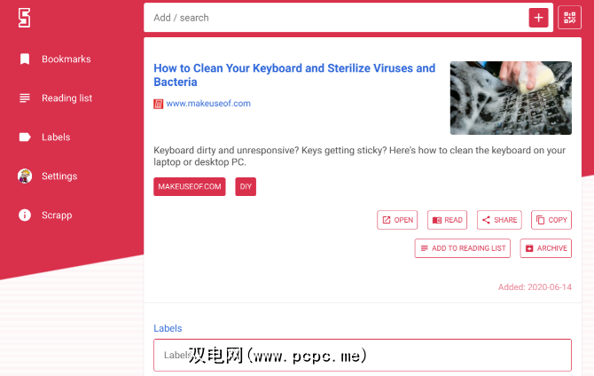Scrapp使组织书签的过程变得尽可能简单,并且看起来很不错。它根据您当前的标签,使用自动标签将标签添加到任何新书签。因此,如果链接的URL,标题,描述或文本具有与您已创建的标签相似的关键字,则以后将更容易找到它。