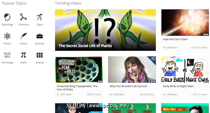 其中包括一些流行的YouTube艺术家,如分钟物理学和ASAP Science,以及鲜为人知的病毒视频。这个想法是通过每天花费几分钟来学习来扩展您的知识。类别包括心理学,化学,空间,物理学,历史,商业,技术,数学等。