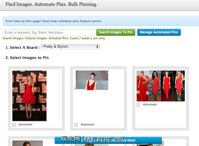 如果您要分配空间自动钉扎,您可以使用Pinwoot的“自动钉扎"部分来进行钉扎。在“自动固定图钉"标签上,您所需要做的就是搜索所需的关键字,选择要使用的木板,然后告诉其将其自动化。针脚将自动为您分配。