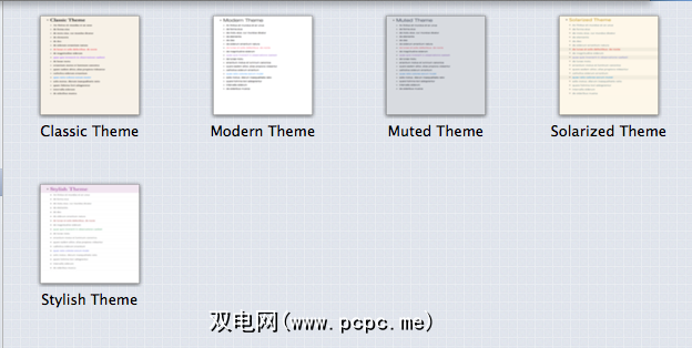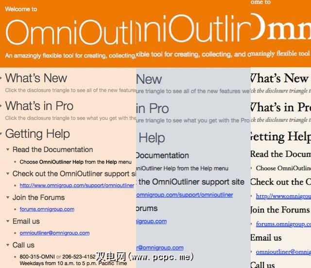 您可以在下载并启动应用程序后立即快速查看OmniOutliner的样式功能。当欢迎文档打开时,实际上是一个大纲,请应用(单击 Format> Apply Template Theme )一个或多个预定义样式主题,以查看如何更改或修饰大纲。
