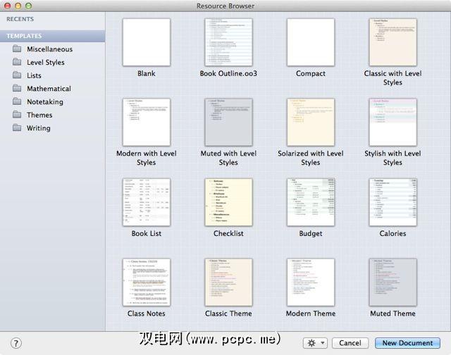OmniOutliner随附20种不同的模板(从简单的清单,预算纲要,书本草稿和课堂笔记),可能有助于您入门。您也可以从头开始创建空白文档。