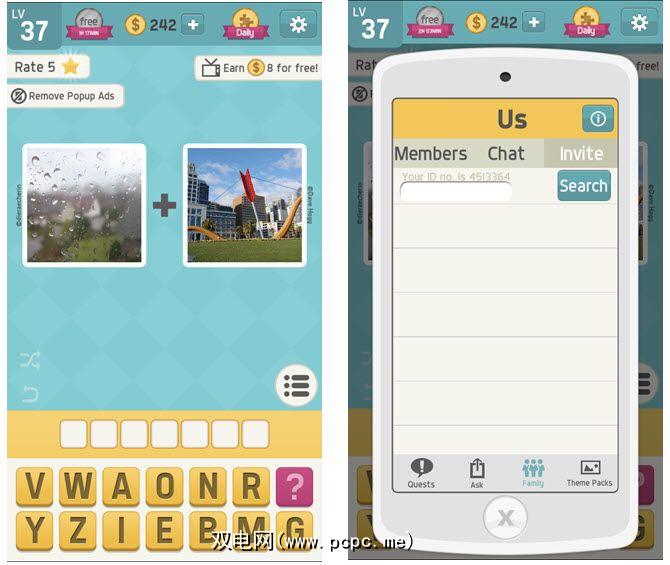 与该列表中的其他游戏不同, Pictoword 可让您创建一个与其他玩家一起玩的“家庭"。您首先需要解决36个级别的问题,但这是一个很好的实践。然后,创建组,邀请成员并在休息时间聊天。