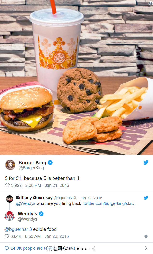 还有另一家快餐公司。似乎一旦一个快餐品牌打开了其社交媒体玩笑,其他所有快餐品牌也都必须参与进来,以免被落后。