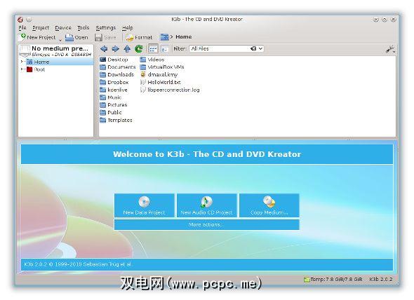 K3b是KDE桌面环境的默认刻录实用程序。通过评估功能和自定义所有功能的能力,已知KDE应用程序不那么简单,K3b也不例外。与Brasero一次只接触应用程序的某些部分不同,K3b从一开始就向您显示一切。然后,您可以使用各种按钮或菜单来访问所需的特定功能。 K3b的主要界面集中在创建项目的想法上–窗口的顶部显示了计算机上的所有文件,而下半部分是您要刻录到光盘上的所有文件。