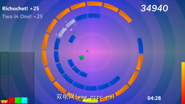 那么,如何确保球停留在里面?为什么,你搬砖头!是的,这里没有桨,砖块本身就是您的弹跳点。因此,顺时针或逆时针移动可保持球的运动。由于显示给您的透视图也会移动球的轨迹,因此可能会造成混乱。还有一个陷阱:右边的仪表可以追踪您移动圆圈的数量,如果圆圈``过热'',圆圈将被锁定,因此请明智地使用此方法!