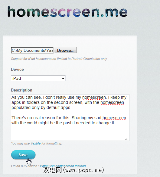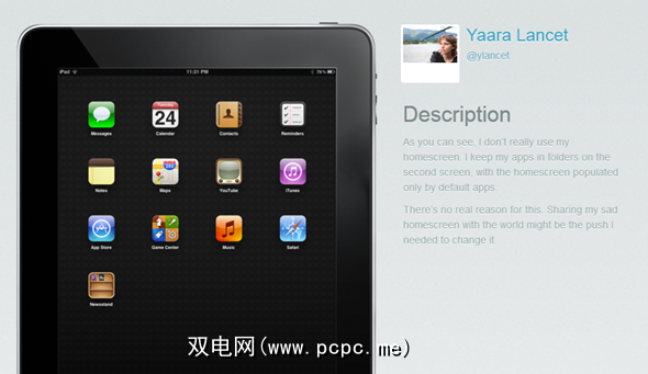 以Homescreen.me为例。这个简单的网络应用程序使人们可以共享一件事,而只能共享一件事:iOS主屏幕。只要拥有一台iOS设备,都没有关系;如果您拥有多台iOS设备,则可以上传任意数量的主屏幕。我们的主屏幕通常包含我们最喜欢的应用程序或我们使用最多的应用程序,并且浏览其他人的主屏幕以及它们的详细说明,可能是发现新应用程序,炫酷壁纸和灵感的绝佳途径。