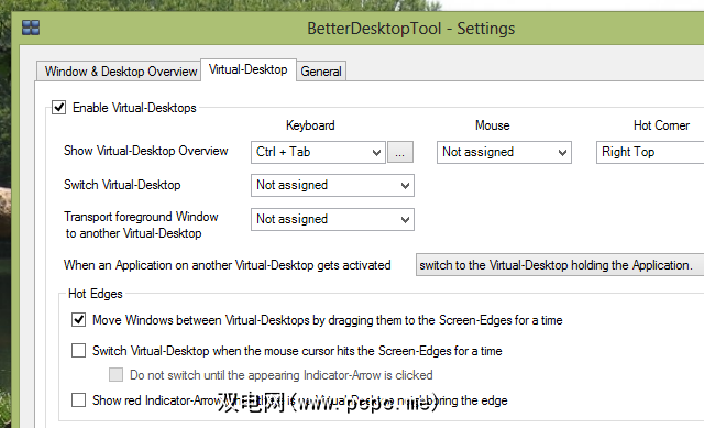 下一步,您需要设置触发器以显示桌面。您可以使用键盘快捷键和/或设置特定的热角来激活桌面概述: