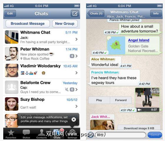 在iOS7设备上更新WhatsApp时,您可以快速发现新布局。在流行的Messenger上进行的许多其他调整中,最重要的是新的“广播列表"功能。这是一项令人欢迎的附加功能,使您可以成组发送消息,而不是单独发消息。