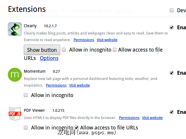 更好的是,禁用所有不经常使用的扩展名。如果要显示扩展名或再次启用扩展名,则可以从扩展名页面中进行操作,可通过在多功能栏中输入 chrome:// extensions / 进行访问。