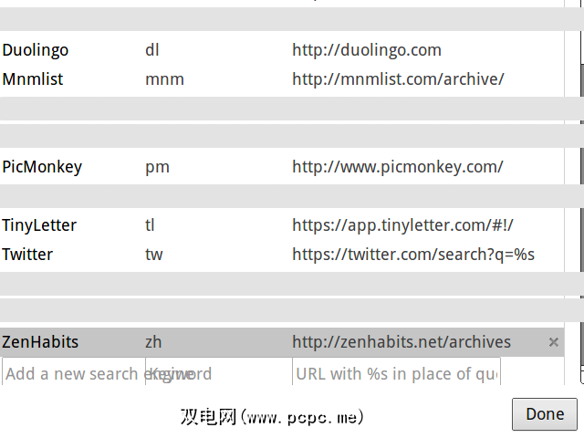 在下图中,您可以看到我已将快捷键 pm 分配给PicMonkey。每当我想打开PicMonkey网站时,我都会键入 pm 并按 Enter。