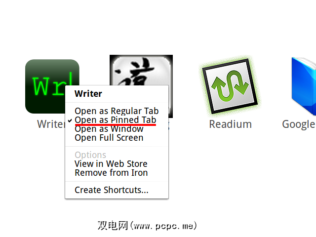 如果您经常使用某项服务,则可能是为了易于使用而安装了其Chrome应用程序。通过将Chrome应用程序设置为自动作为固定选项卡打开,清除一些宝贵的浏览器空间。为此,请导航至 Apps 部分,右键单击一个应用程序图标,然后单击打开为固定选项卡。