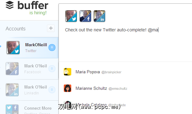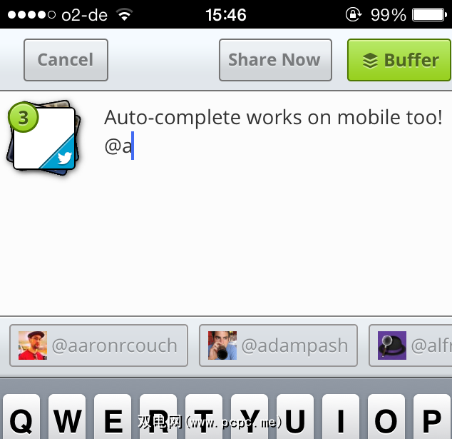 如果在手机上使用Buffer,智能自动完成功能也可以在其中使用。同样的交易。只需开始输入此人的名字,它就会开始提示该人的名字。当您看到正确的名称时,请点击它,然后在Bingo上为您填充它。