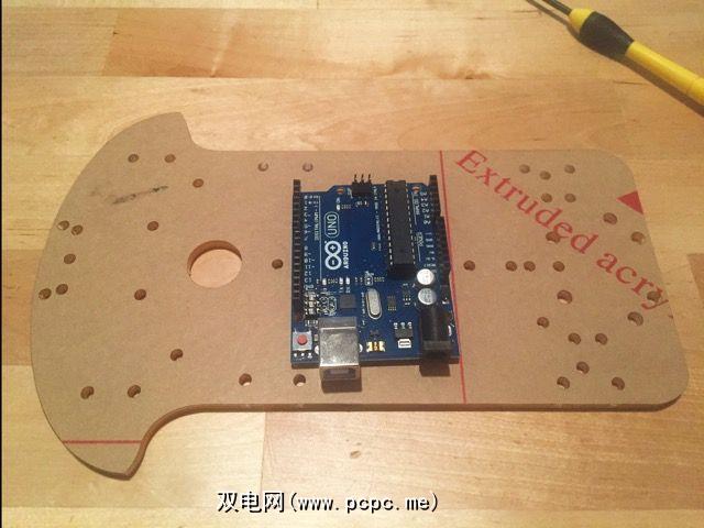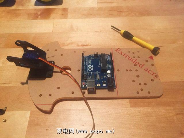 现在,将机箱的那一部分放在一边,然后抓住另一个将放在上面的机器人。下一步是连接Arduino,同样,我必须使用电工胶带,但是您应该能够使用一些螺栓和螺母更好地固定自己。