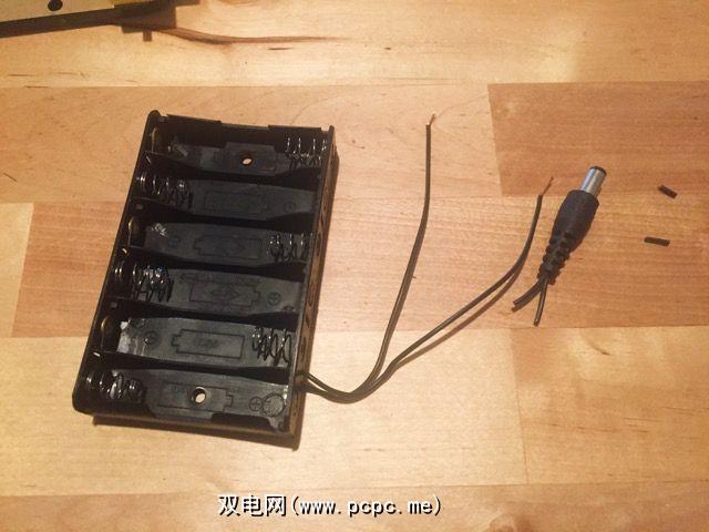 现在已安装了H桥,您可以开始为电源接线。因为六号AA电池座带有DC适配器,所以您需要切断末端(我这样做了),或者将跳线连接到电池本身。