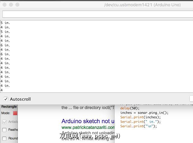 上传草图,然后使用工具>串行监视器打开串行监视器。您应该看到快速更新的数字序列。把手放在传感器前面,然后查看该数字是否发生变化。将手移入和移出,应该可以测量出手距传感器的距离。