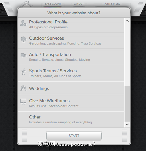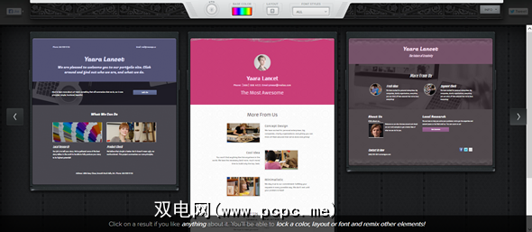 或者,尤其是如果您对自己喜欢的东西有更好的了解时,可以使用顶部菜单选择您喜欢的基本颜色,布局或字体样式,并帮助Breezi及其建议。
